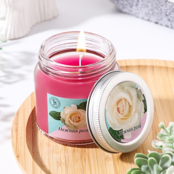 Свеча ароматическая в стекле 6,3см, 100мл, нежная роза