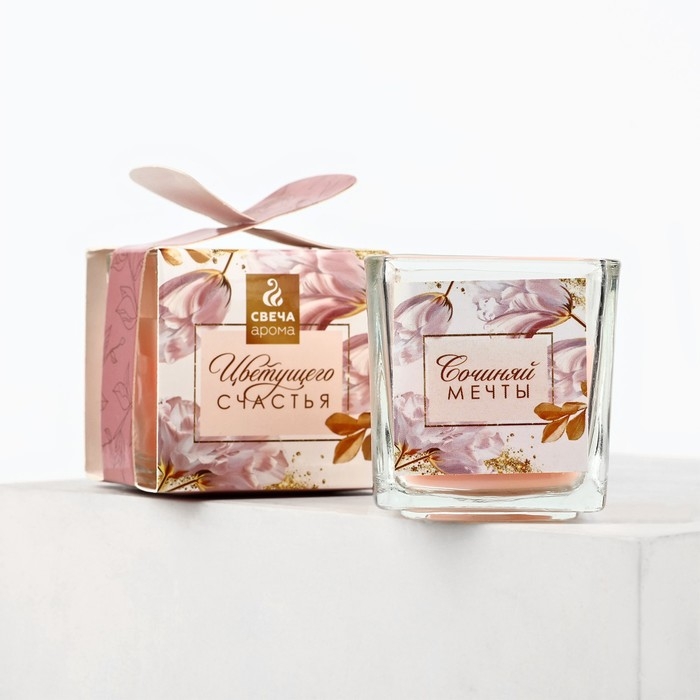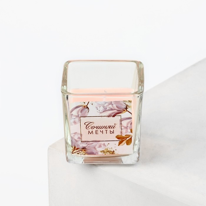 Ароматическая свеча в стекле «Сочиняй мечты», аромат малина, 5,3 х 5,3 х 5,5 см.