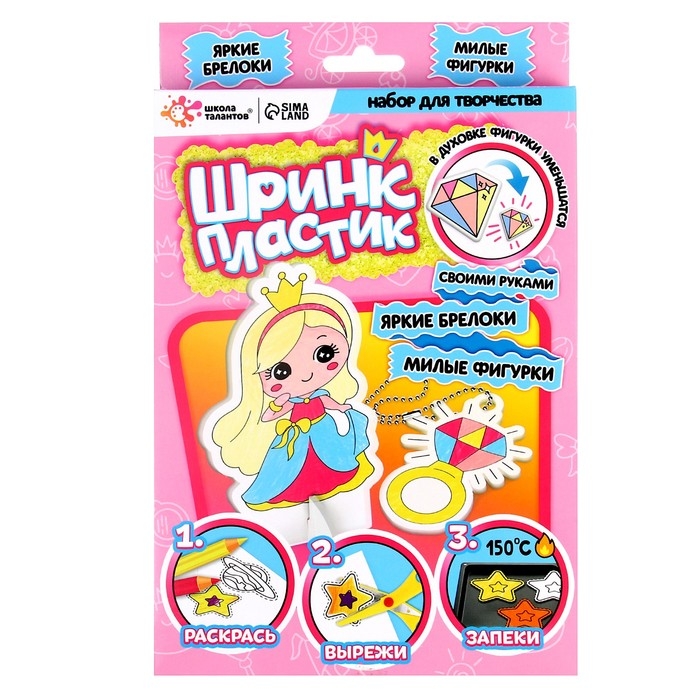 Набор для творчества «Шринк-пластик» позволит вам смастерить авторские брелоки своими руками. В комплекте есть различные шаблоны рисунков для создания уникальных аксессуаров.