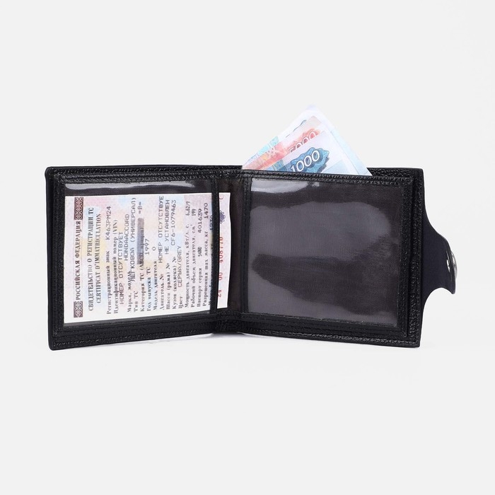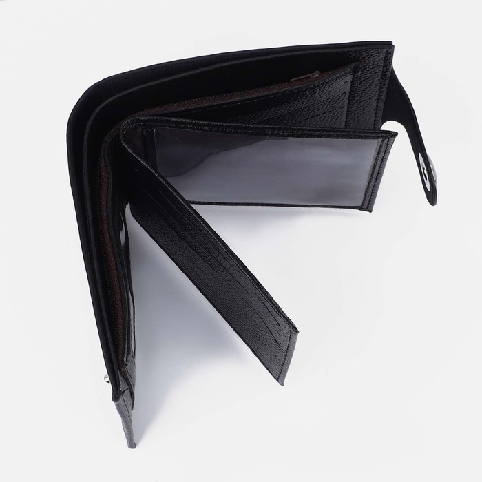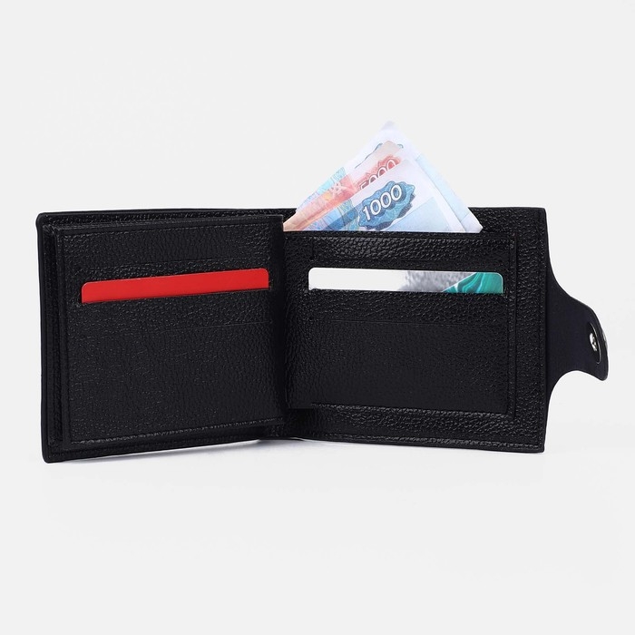 Портмоне мужское на магните, отдел для купюр, для монет, для карт, цвет чёрный