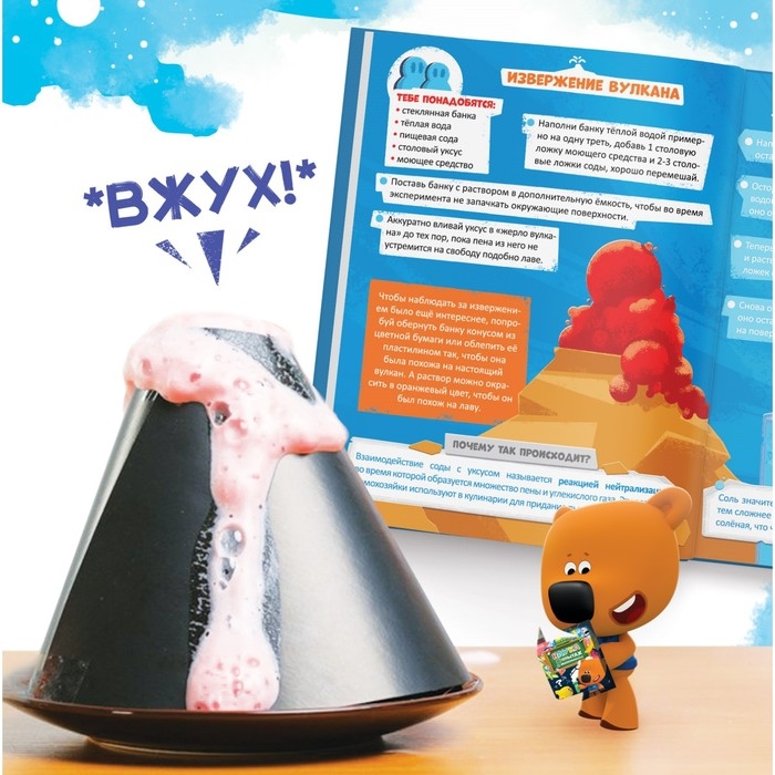 - На 48 страницах ребёнок найдёт 35 разнообразных опытов с подробным описанием и инструкцией по их проведению.