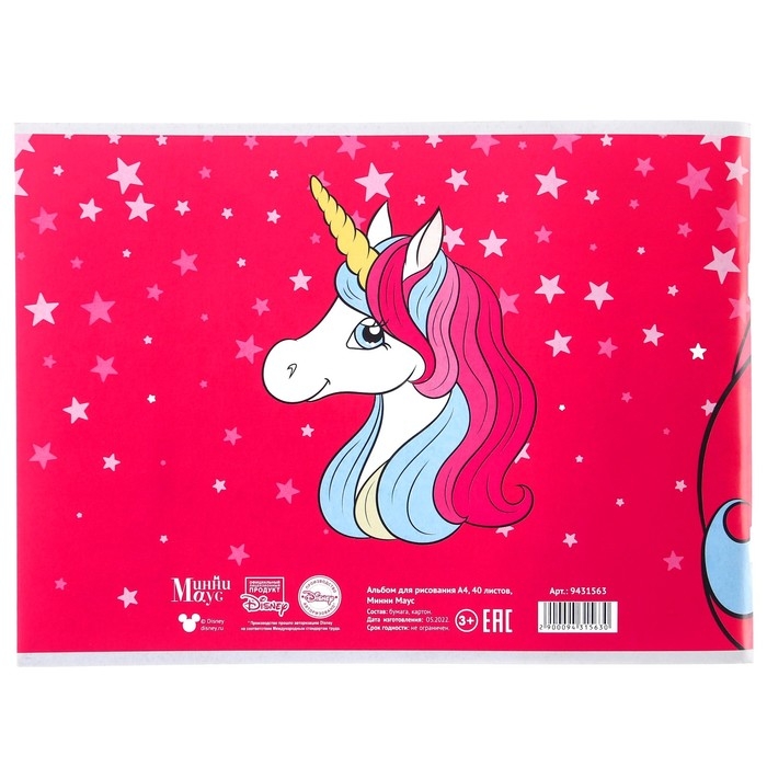 Альбом для рисования А4, 40 листов 100 г/м², на скрепке, Минни Маус и единорог
