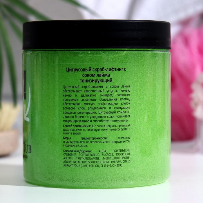 Способ применения: 1–2 раза в неделю, принимая душ, нанесите на влажную кожу, помассируйте и смойте водой.