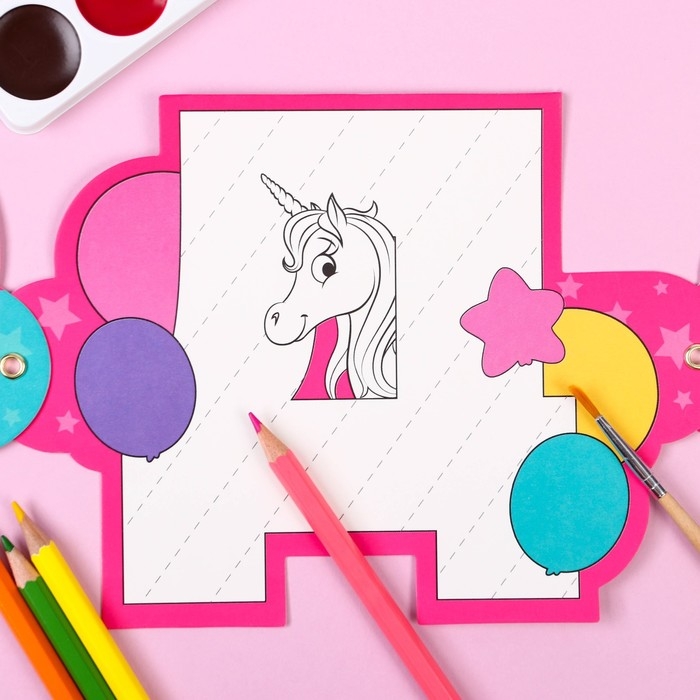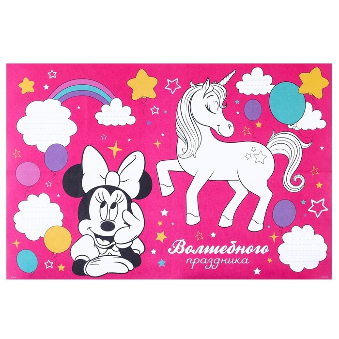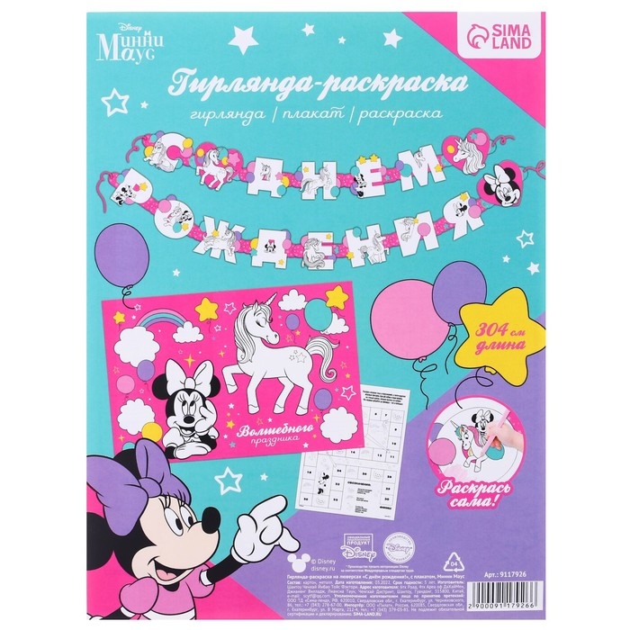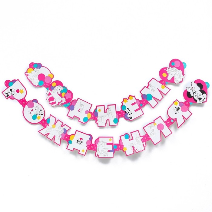 Гирлянда на люверсах с плакатом "С Днем Рождения", длина 304 см, Минни Маус и Единорог