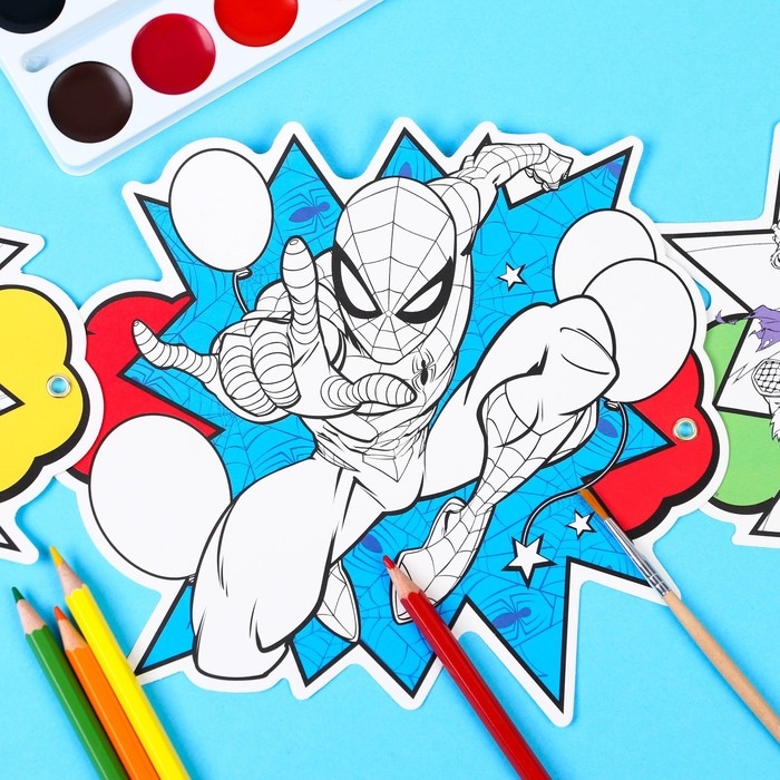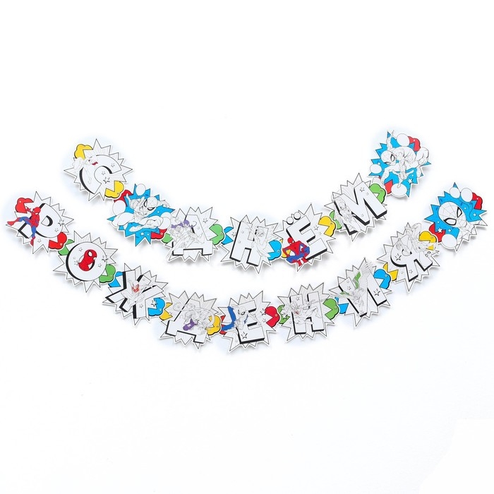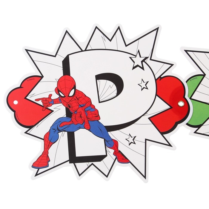 Гирлянда на люверсах с плакатом "С Днем Рождения", длина 304 см, Человек-паук