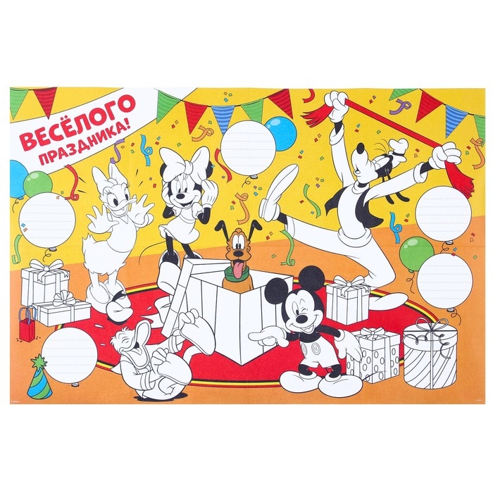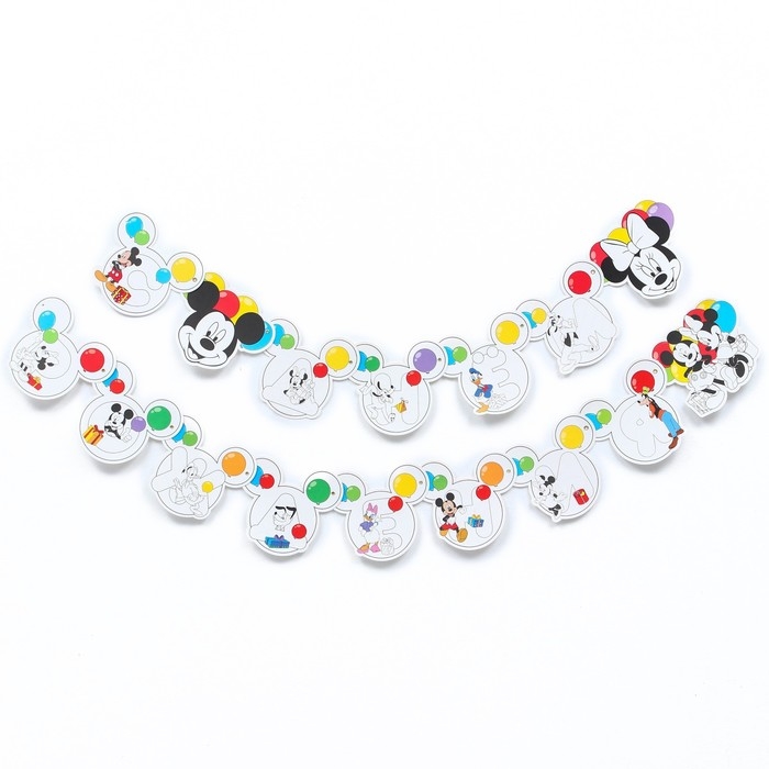 Гирлянда на люверсах с плакатом "С Днем Рождения", длина 284 см, Микки Маус