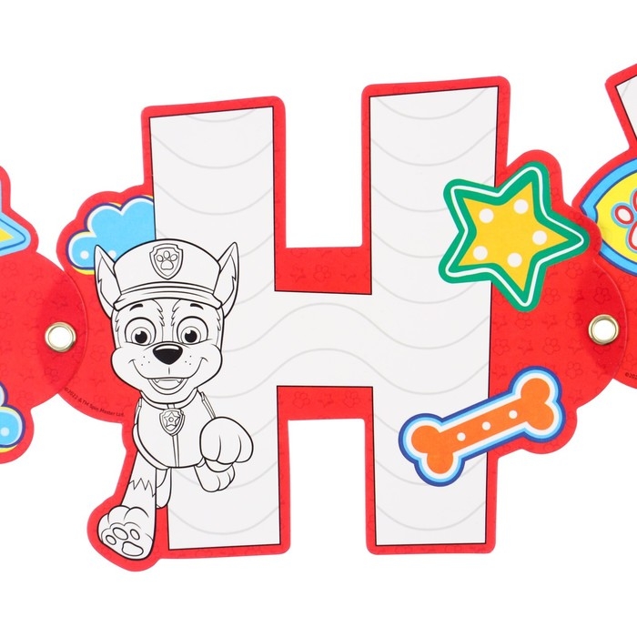 Гирлянда-раскраска на люверсах "С днем рождения!", с плакатом, длина 250 см, Щенячий патруль