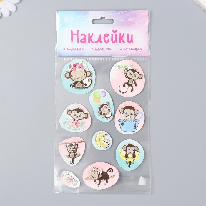 Наклейка картон 2 слоя "Мартышки" 17х12 см