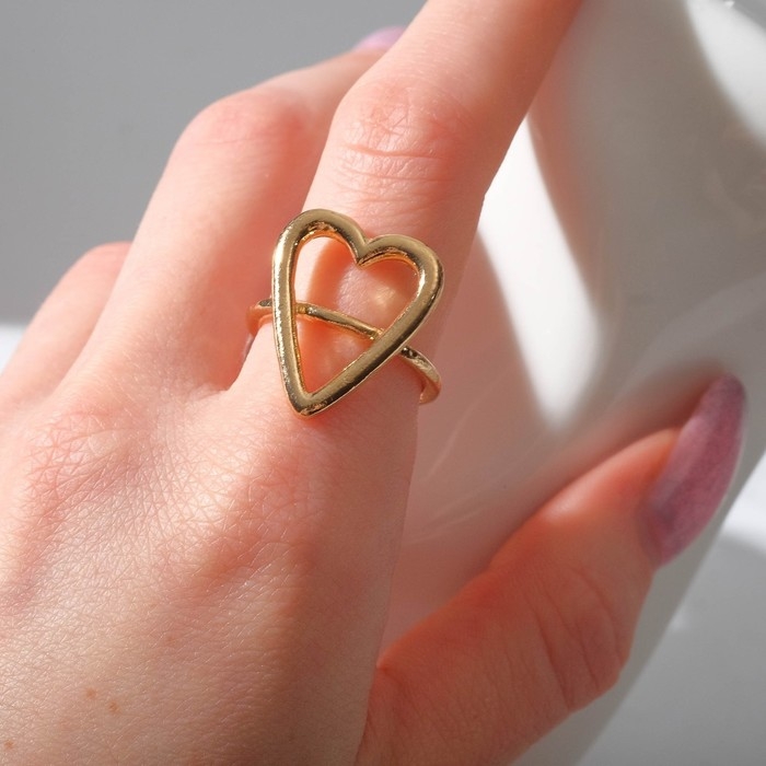 Кольцо «Минимал» сердце, цвет золото, безразмерное