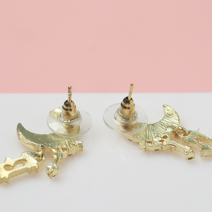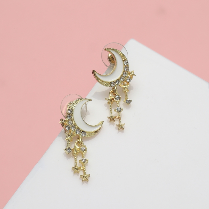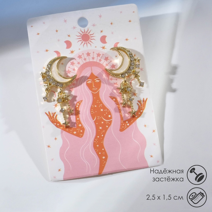 Серьги со стразами «Полумесяц» звёзды, цвет белый в золоте