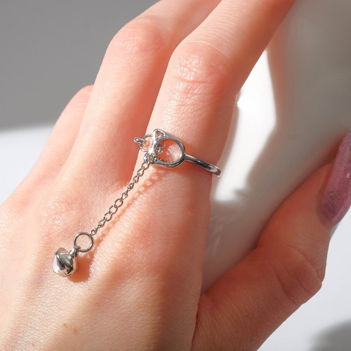 Кольцо «Цепь» кошечка, цвет серебро, безразмерное