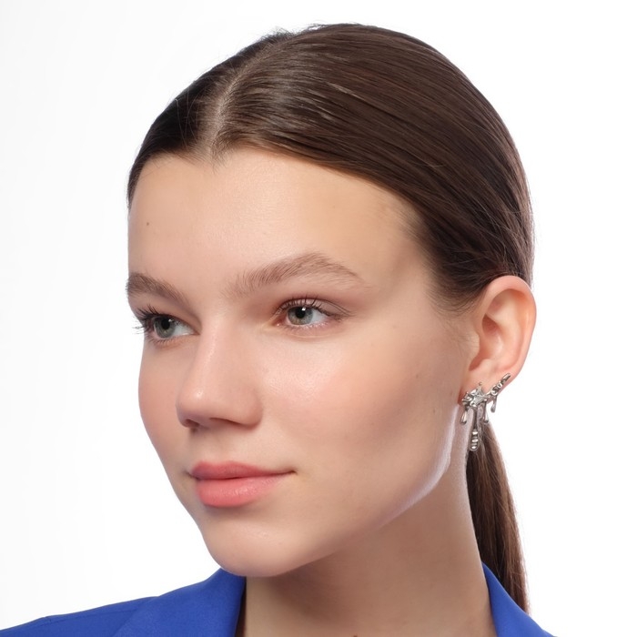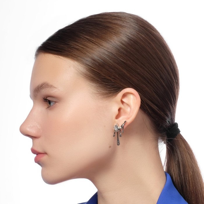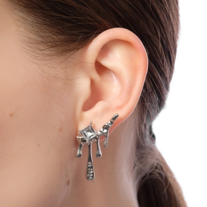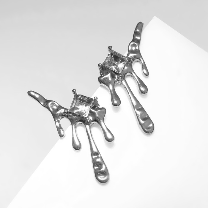 Серьги со стразами «Таяние» ромб, цвет белый в серебре