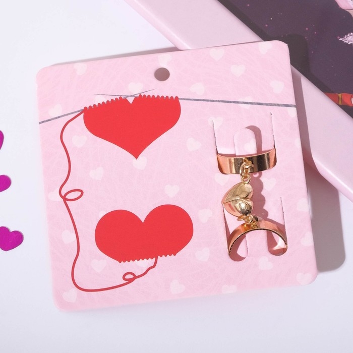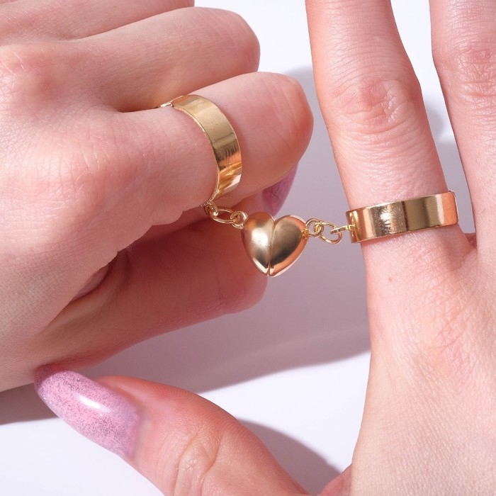 Кольца «Неразлучники» на магните, сердце, цвет золото, безразмерные