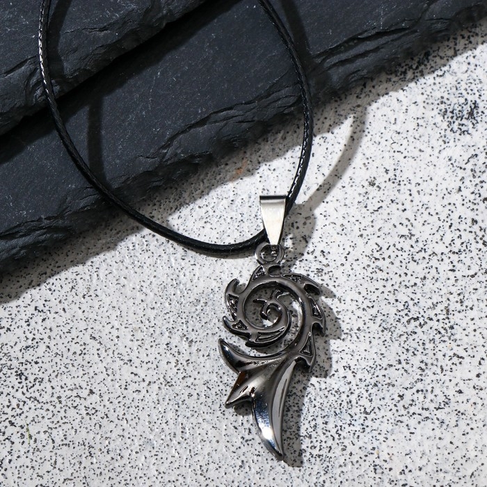 Кулон унисекс «Дракон» пламя, цвет серый на чёрном шнурке, 44 см