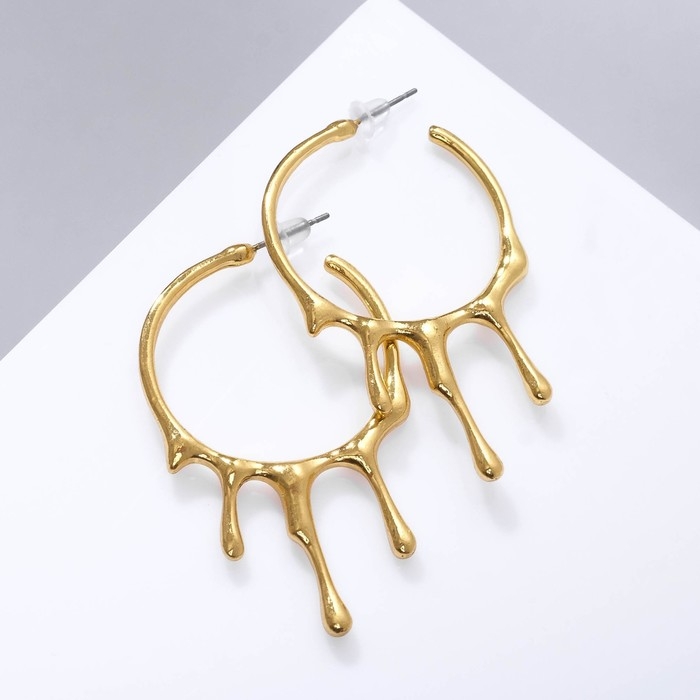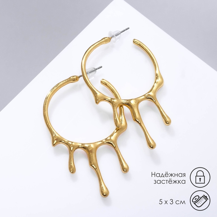 Серьги металл «Капли» стекающие, цвет золото