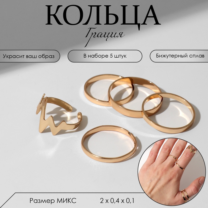 Кольцо набор 5 штук «Грация», размер МИКС, цвет золото