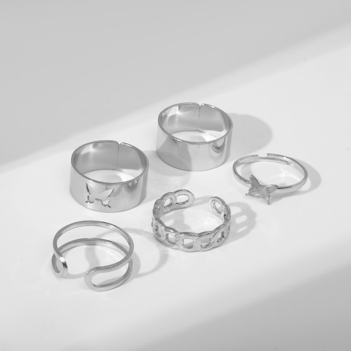 Кольцо набор 5 штук «Минимализм», размер МИКС, цвет серебро