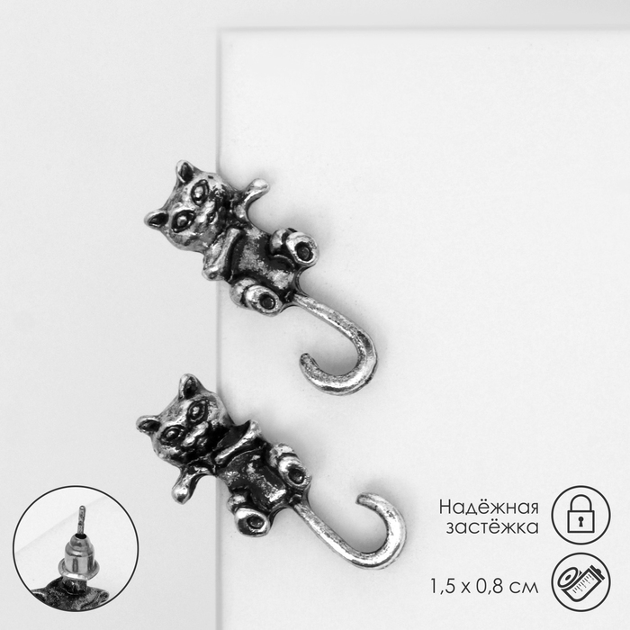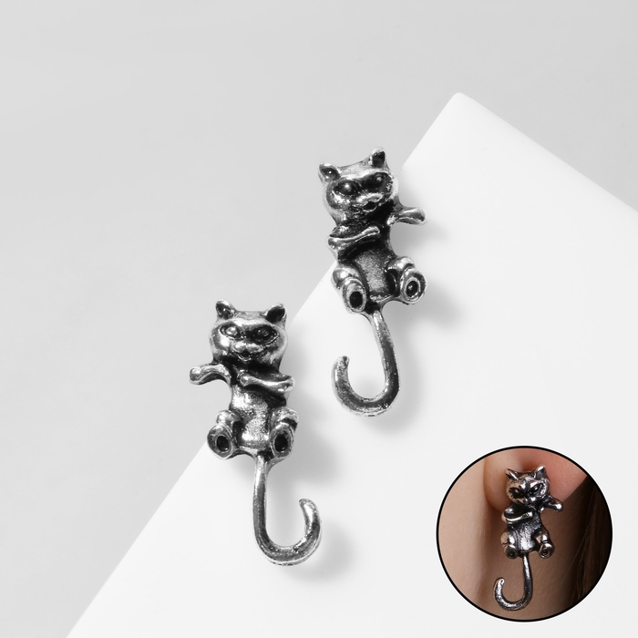Серьги металл «Котята» хвостатые, цвет чернёное серебро