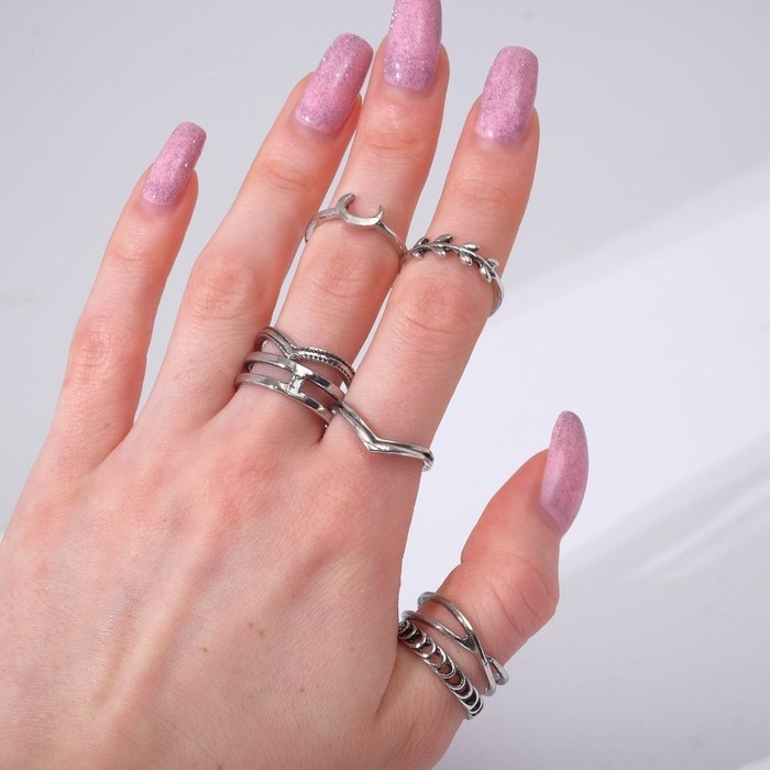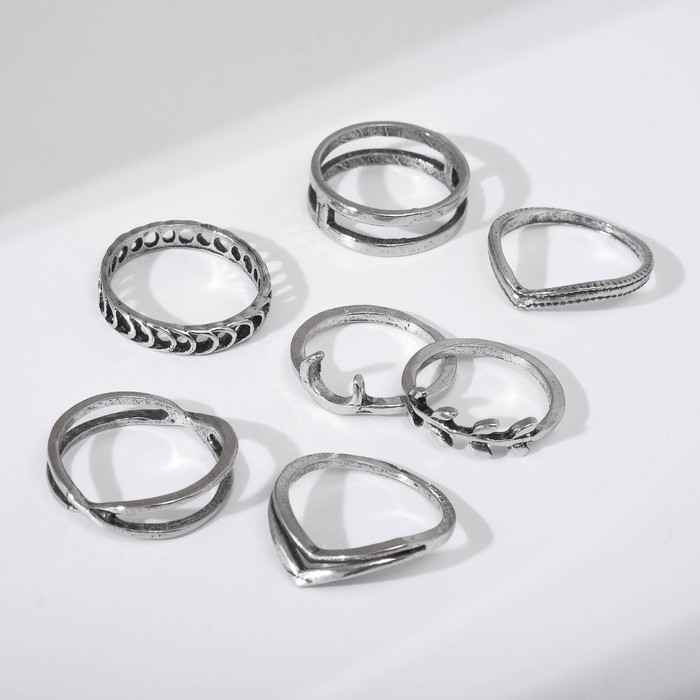 Набор колец 7 штук «Ассорти» нимбы, размер МИКС, цвет серебро