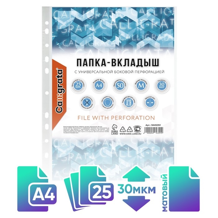 Файл-вкладыш А4 30мкм Calligrata матовый, вертикальный, 25шт