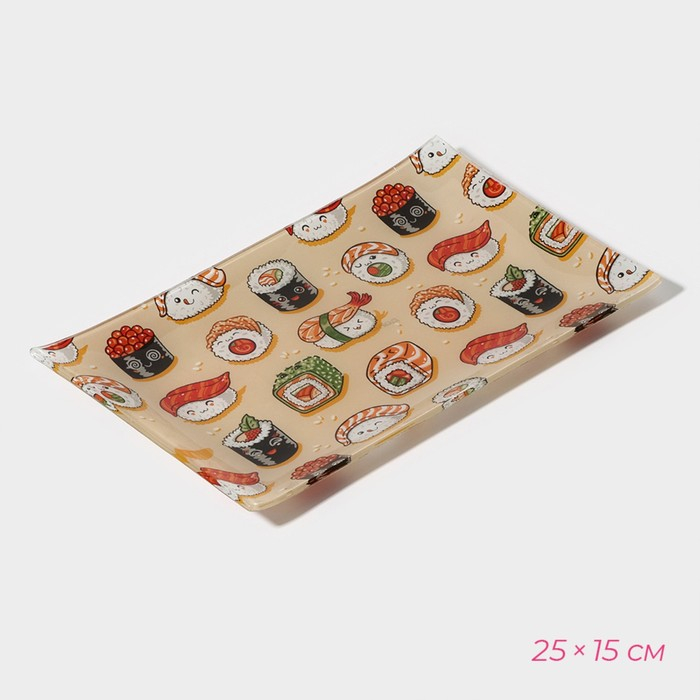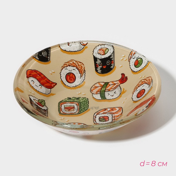 Набор для суши из стекла Доляна «Сет», 3 предмета: соусники 8×2 см, 8×6 см, подставка 25×15×2 см