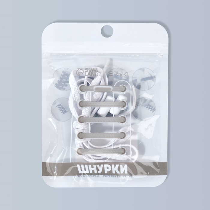 Шнурки для обуви, пара, плоские, с фиксатором, эластичные, 6 мм, 100 см, цвет белый