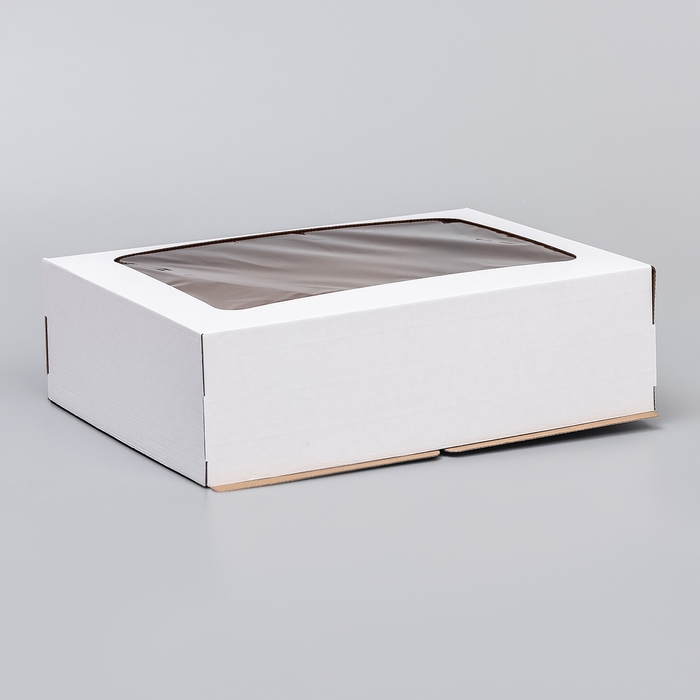 Коробка под торт с окном, белая, 30 х 40 х 12 см