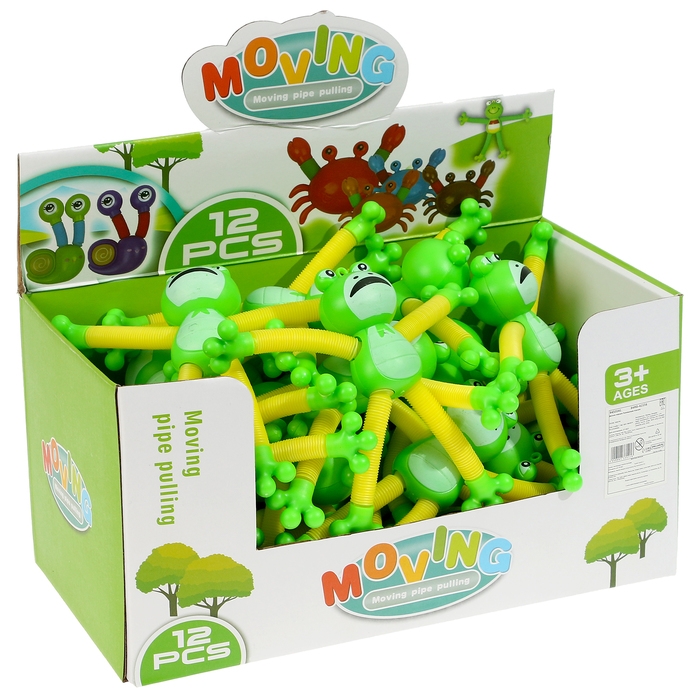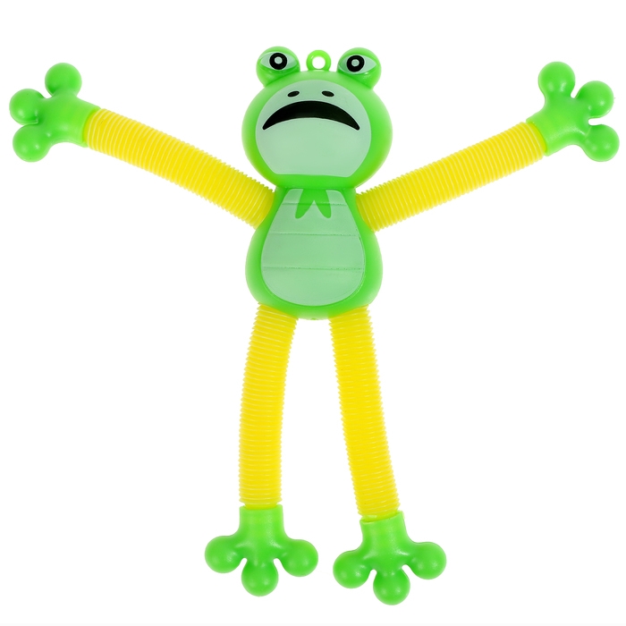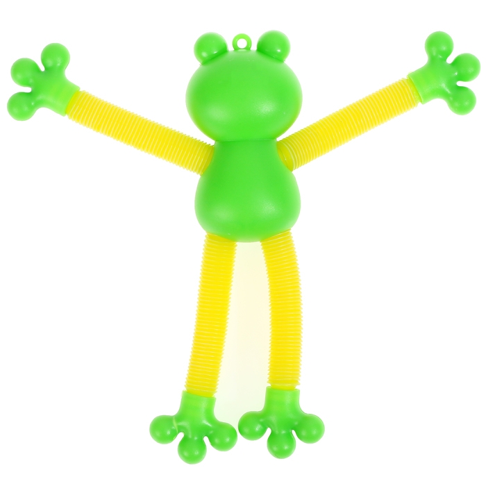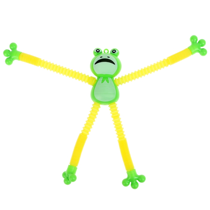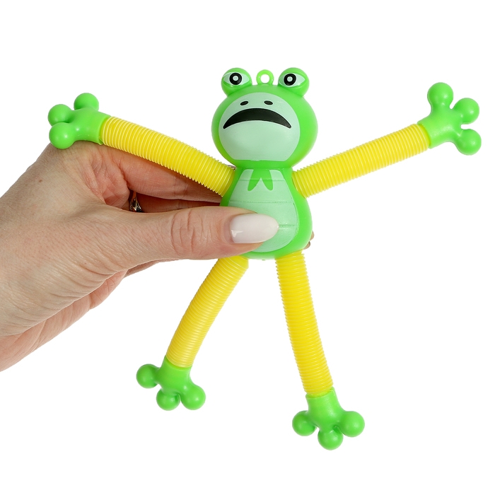 - Трубки антистресс, из которых состоят конечности лягушки – жесткие и прочные. Их можно растягивать, сгибать, крутить и соединять с помощью присоски между собой