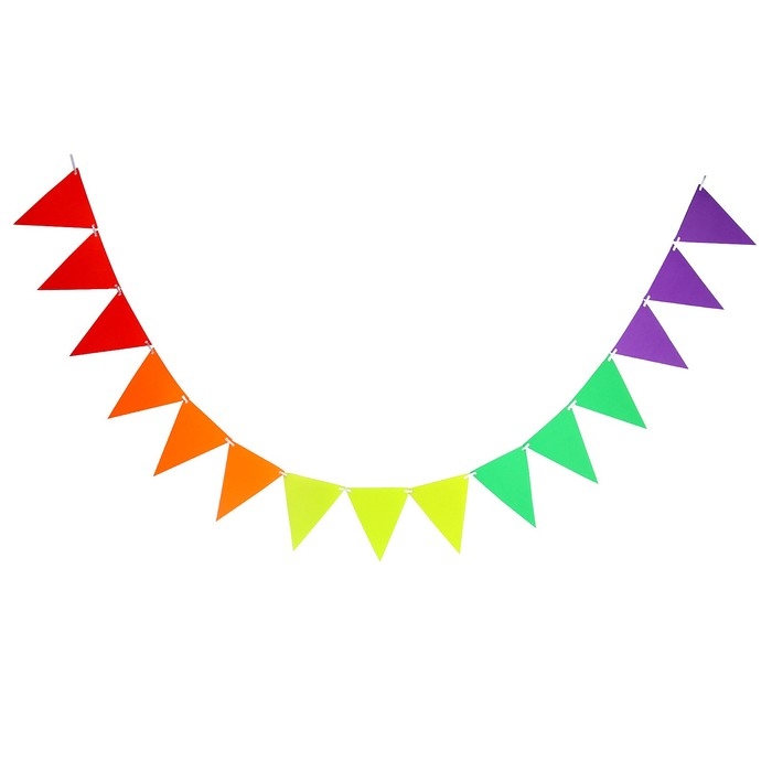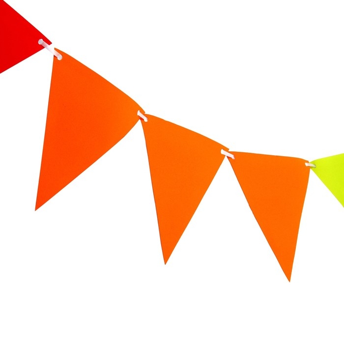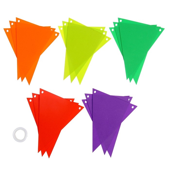 Гирлянда из треугольных флажков — это универсальное украшение, которое добавит атмосферу праздника в любое помещение. Она состоит из цветных флажков, нанизанных на прочную ленту, что позволяет легко закрепить её в нужном месте. Изделие подходит для использования в помещении и на улице.