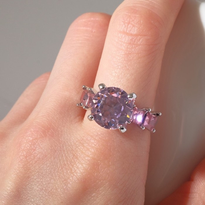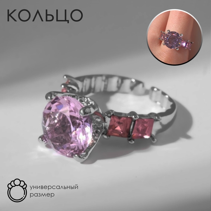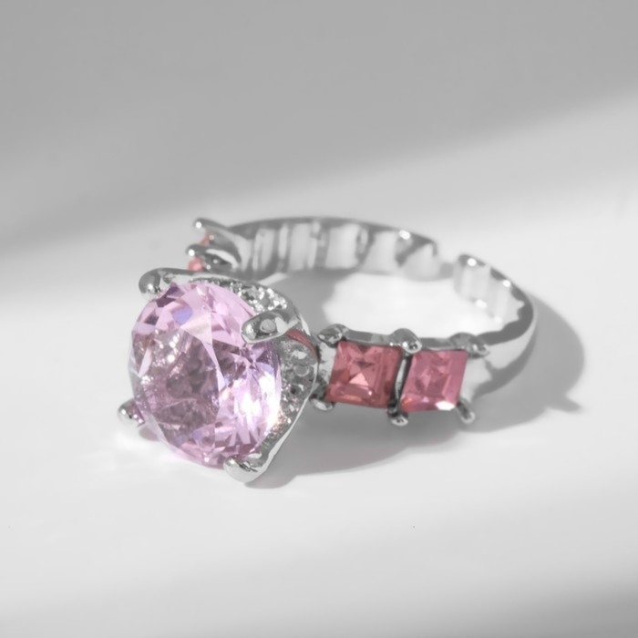 Кольцо «Драгоценность» леди, цвет розовый в серебре, безразмерное