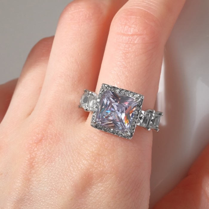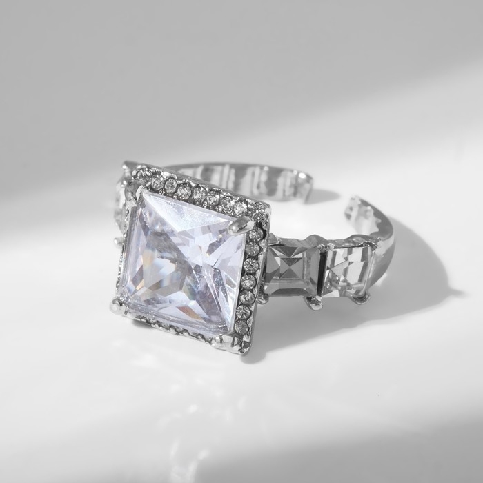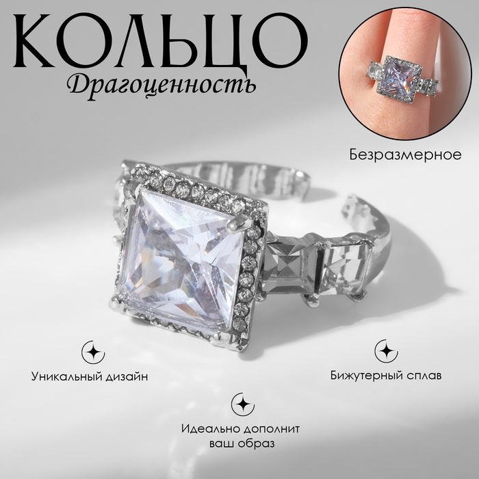 Кольцо «Драгоценность» квадрат в стразах, цвет белый в серебре, безразмерное