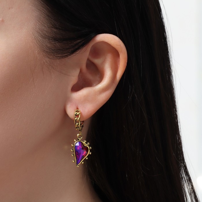 Серьги висячие со стразами «Сердце» асимметрия, цвет красный в чернёном золоте, 6,2 см