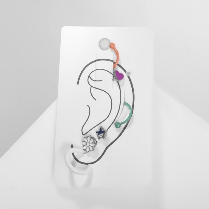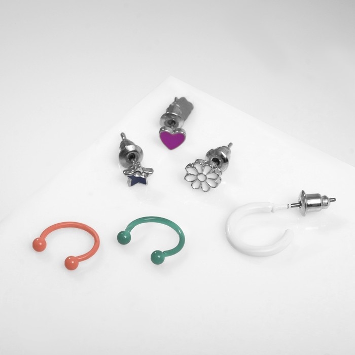 Серьги «Каффы» фантазия, набор 5 шт., цветные с серебром