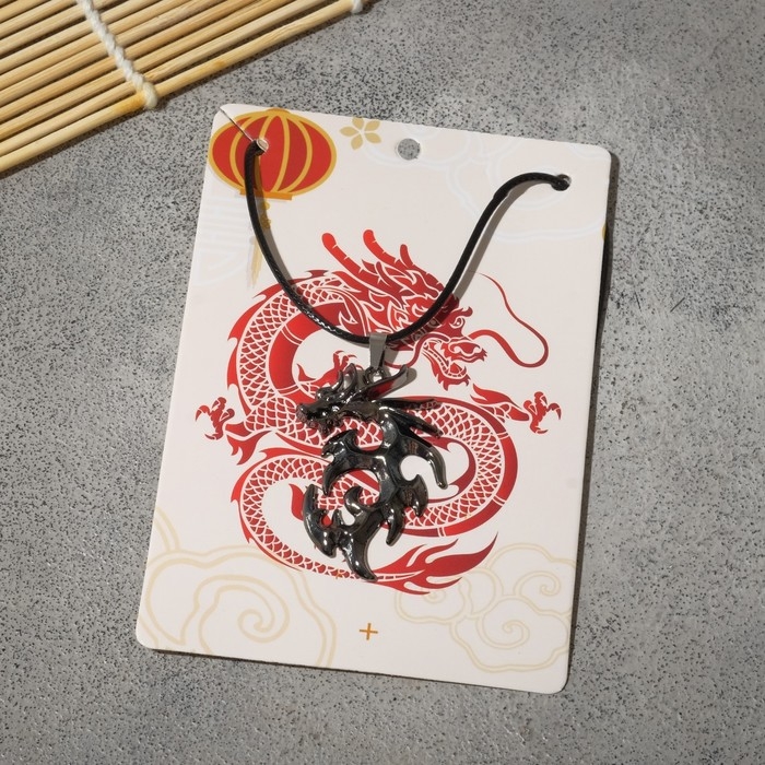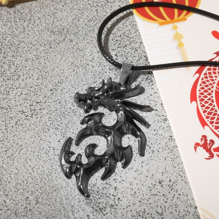 Кулон унисекс «Дракон» резной, цвет чёрный на чёрном шнурке, 44 см