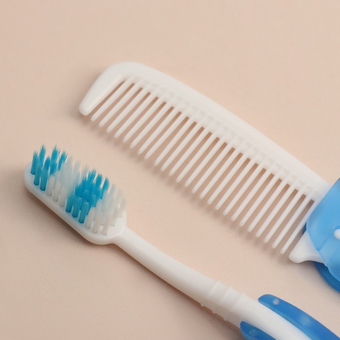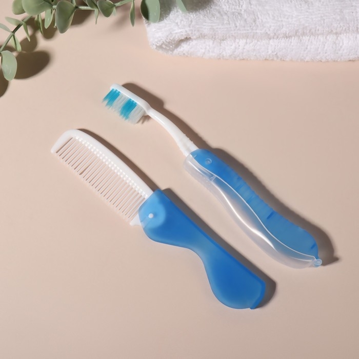 Набор дорожный, 2 предмета: расчёска, щётка, цвет белый/голубой