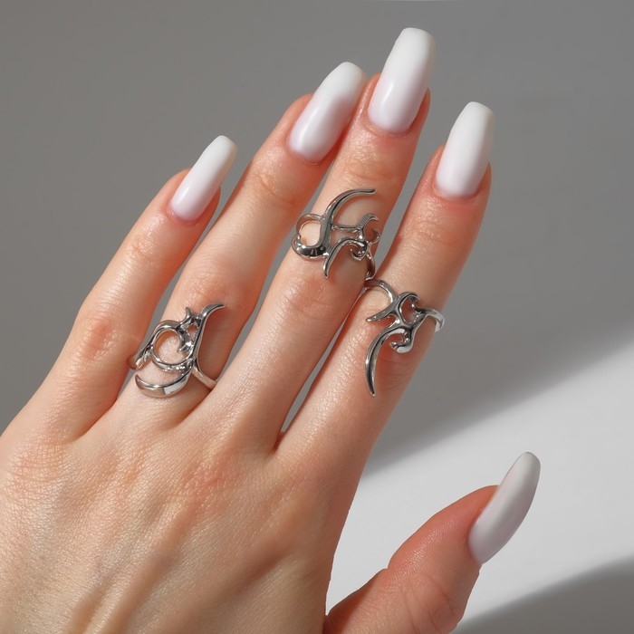Кольцо набор 3 штуки «Когти» узор, размер МИКС, цвет серебро