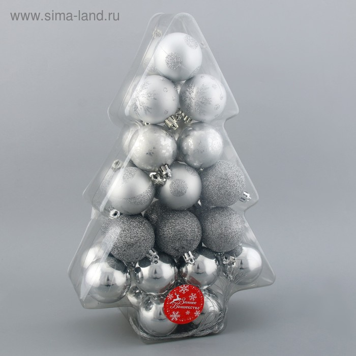 Набор шаров пластик d-5 см, 34 шт "Серебристые узоры" серебро
