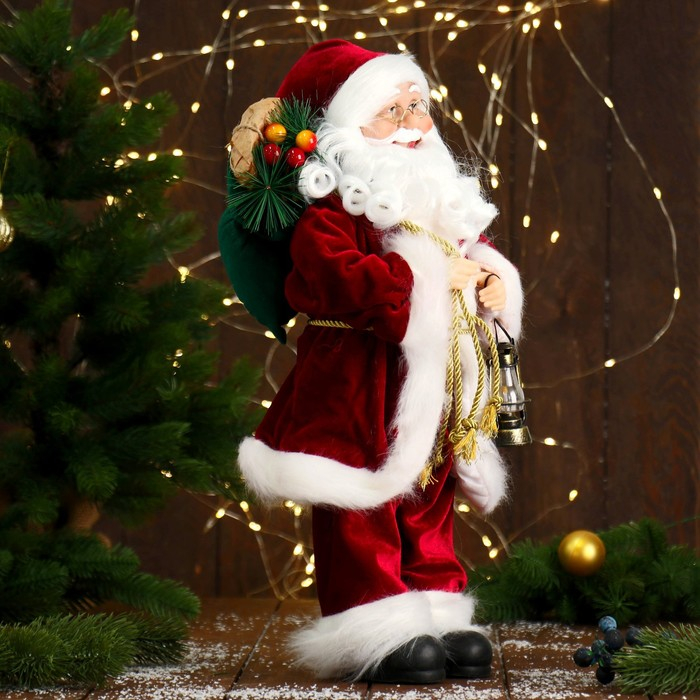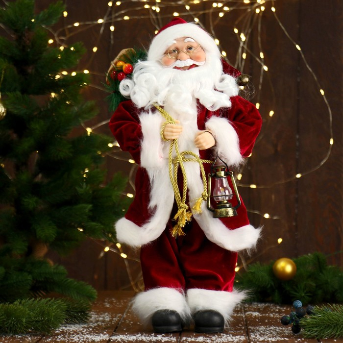 Дед Мороз "В красной шубке, с фонарём" 45 см