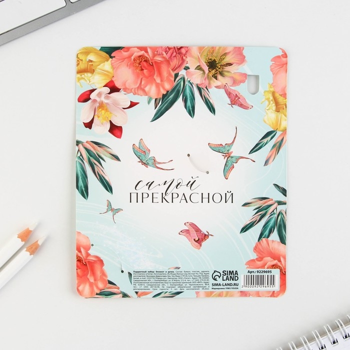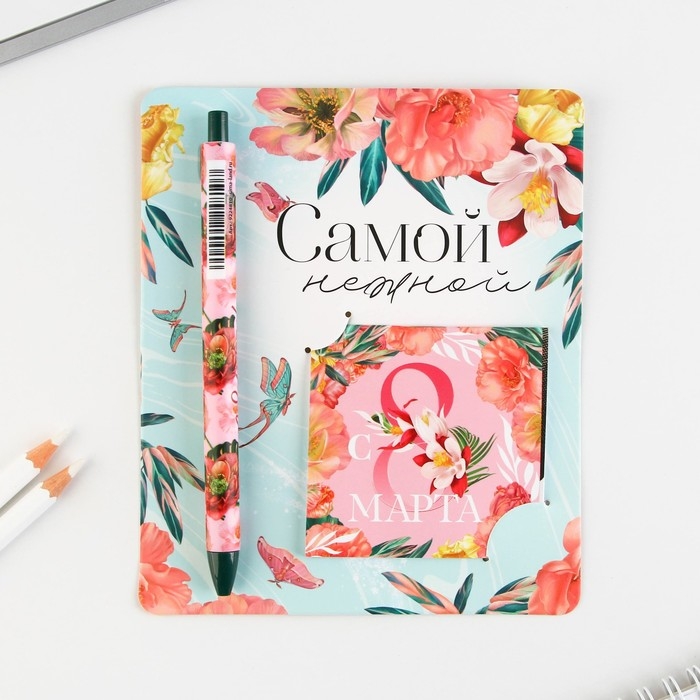 Подарочный набор: ручка шариковая и блокнот 16 л «Самой нежной» .