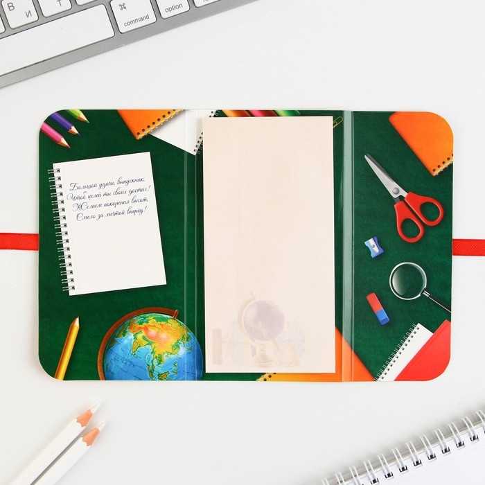 Блок бумаги для записей с липким слоем на выпускной «Открытий и побед» в открытке с лентой, 30 листов