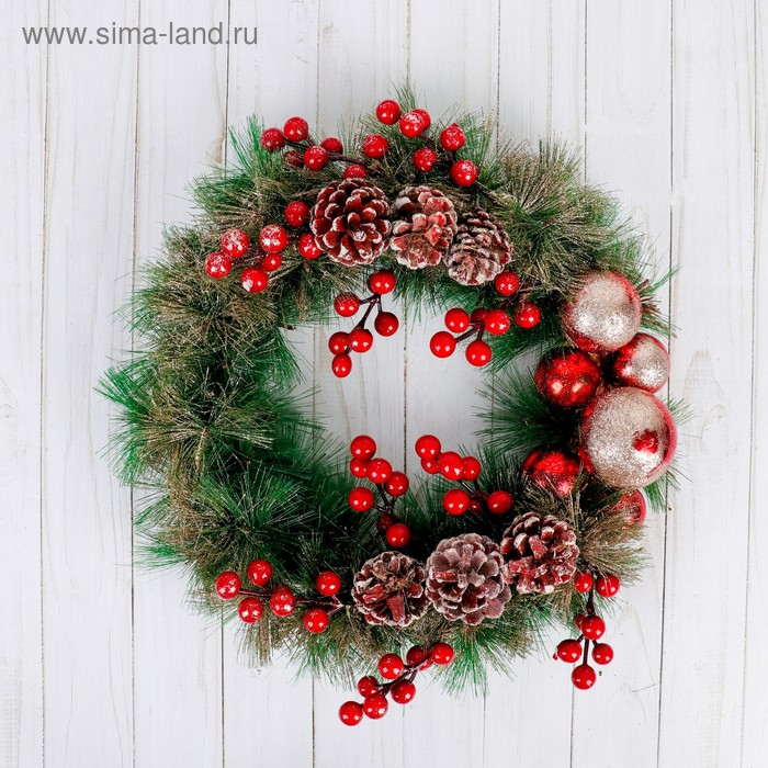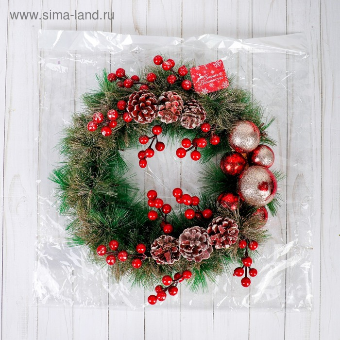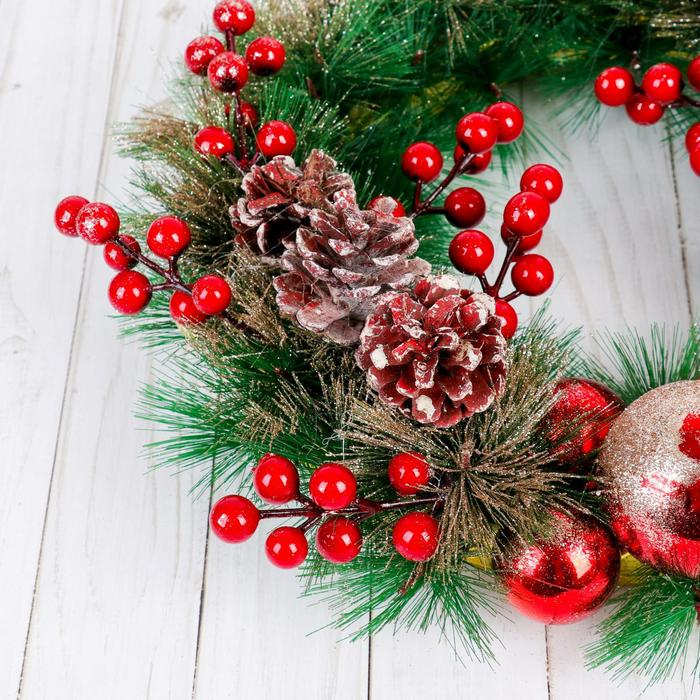 Венок новогодний d-30 см "Ягодки красные и шишки"