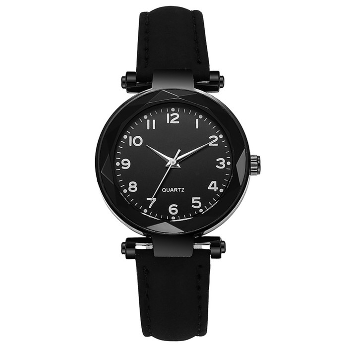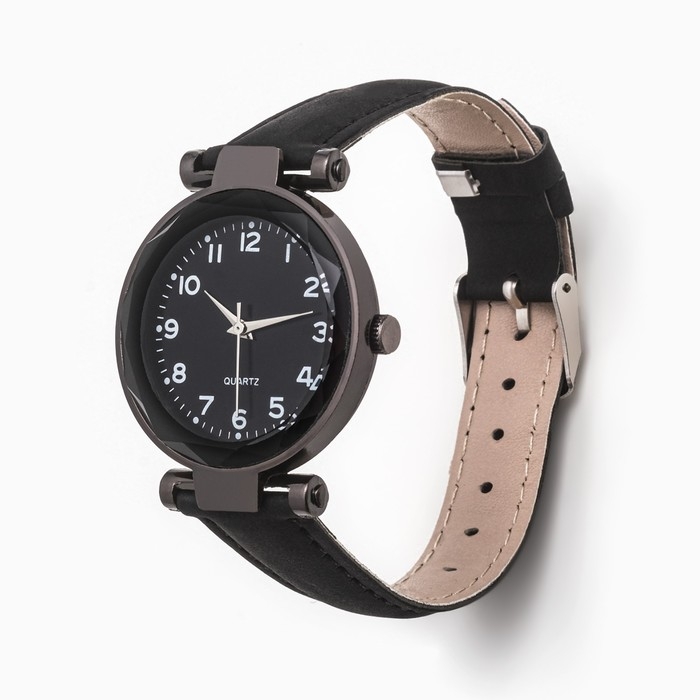 Часы наручные женские кварцевые "Ливато", d-3.7 см, черные