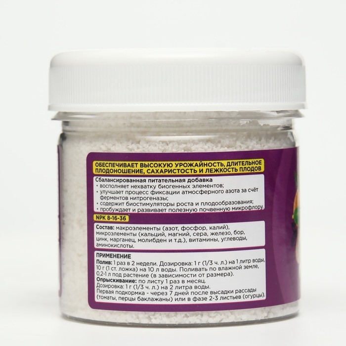 Одна баночка заменяет множество различных удобрений и полностью закрывает потребности растений в макро- и микроэлементах, аминокислотах, углеводах, витаминах на всех стадиях роста.