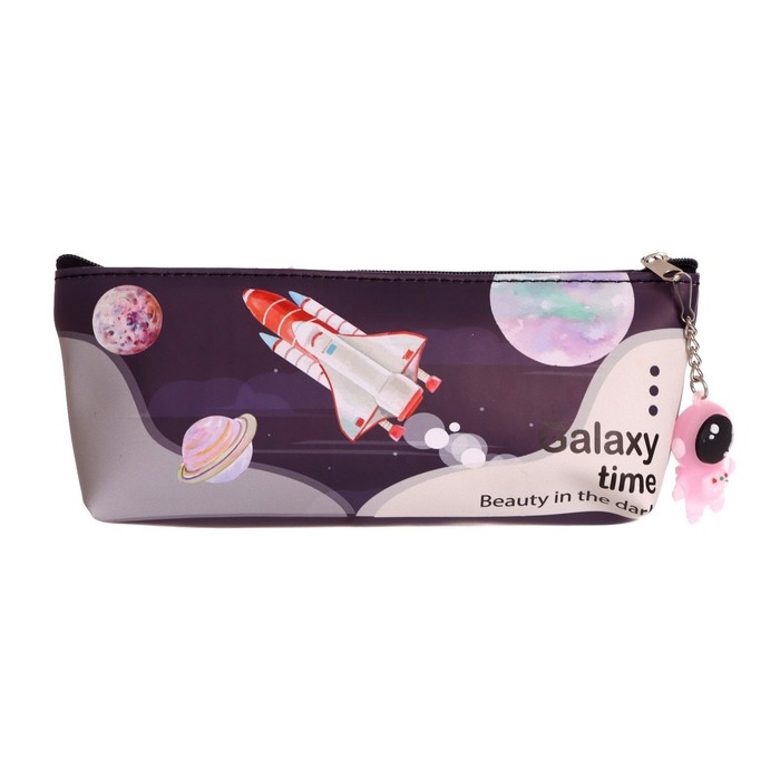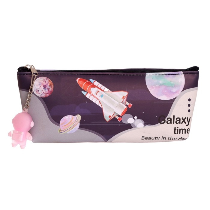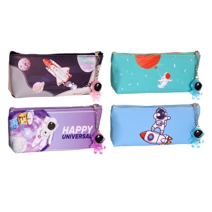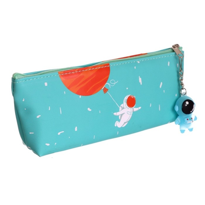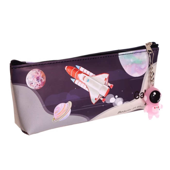 Пенал школьный на молнии, с подвеской, "Космонавт", МИКС