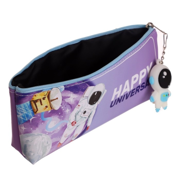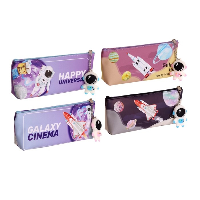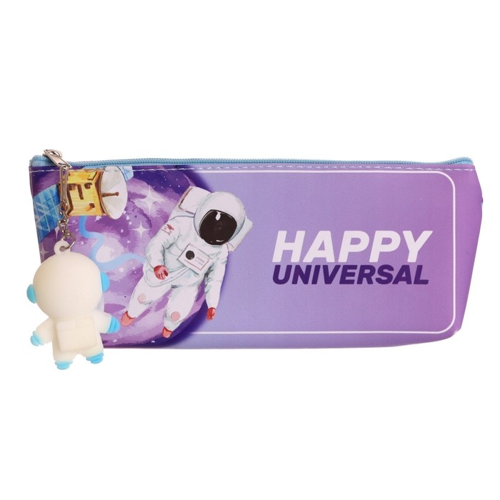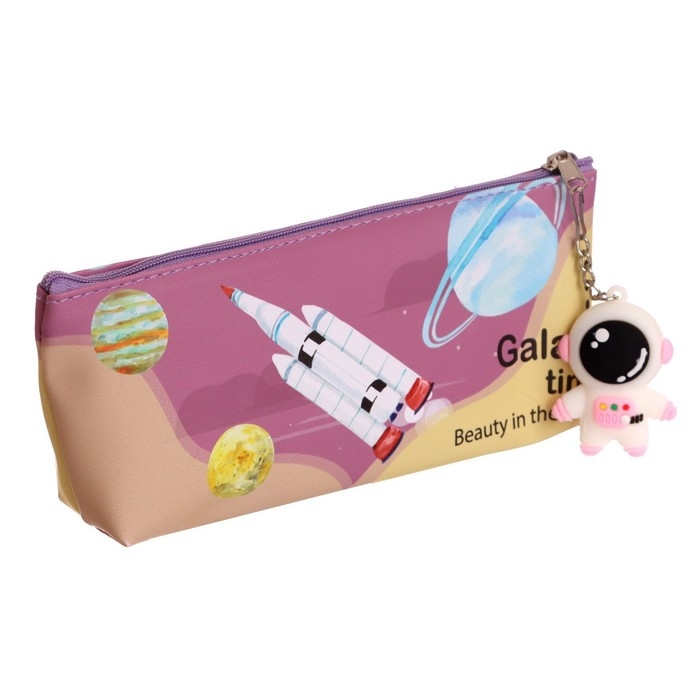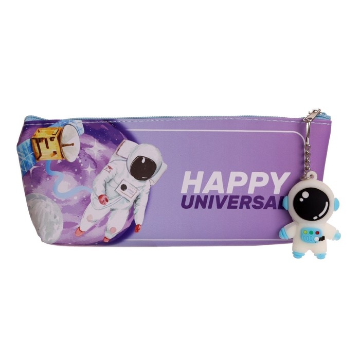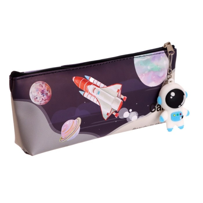 Пенал школьный на молнии, с подвеской, "Космос", МИКС