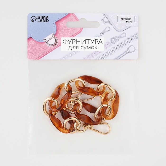 Цепочка для сумки, пластиковая, с карабинами, 34 × 21/23 × 17 мм, 30 см, цвет янтарно-коричневый/золотой
