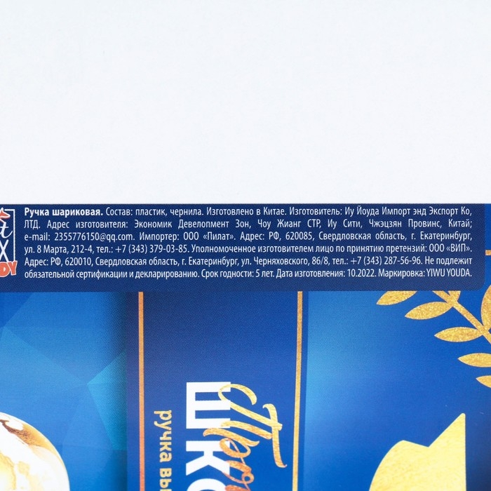 Ручка шариковая синяя паста 0.7 мм «Успехов во всем» пластик с тиснением на корпусе