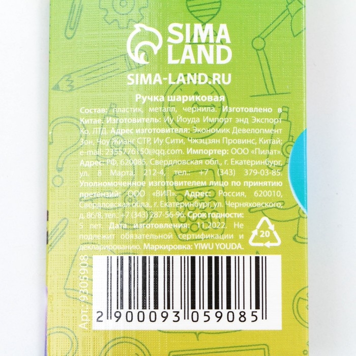 Ручка шариковая синяя паста 0.7 мм «Успехов во всем» пластик с тиснением на корпусе