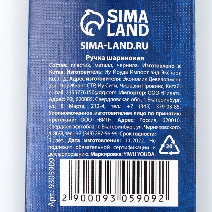 Ручка шариковая синяя паста, пластиковая со звездой "С 23 Февраля"