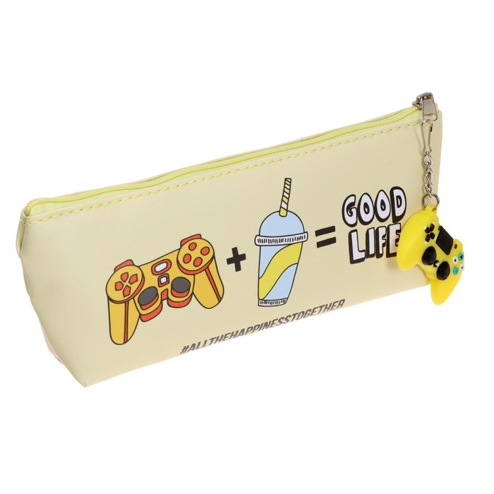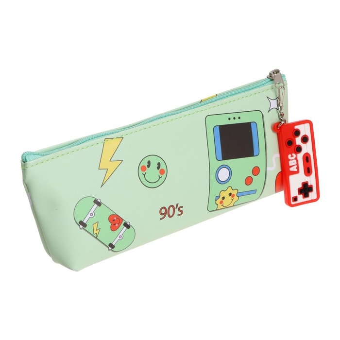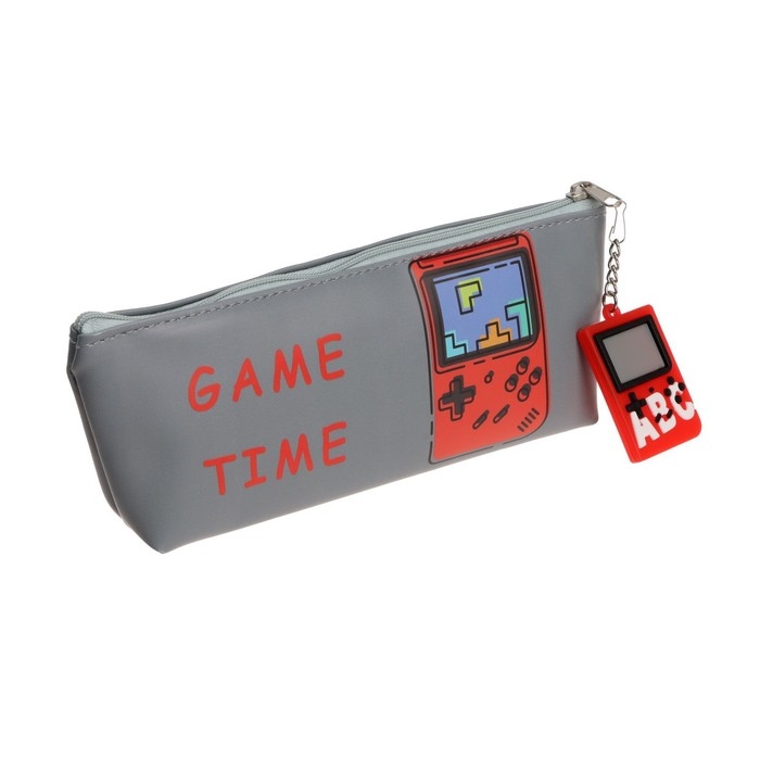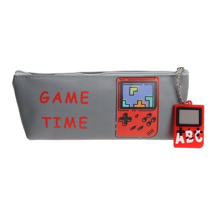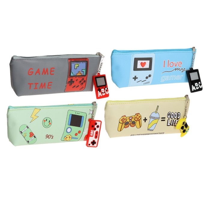 Пенал школьный на молнии, с подвеской "Игра", МИКС